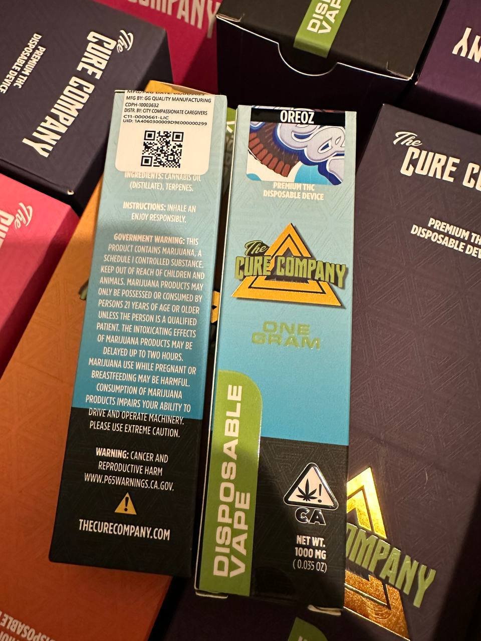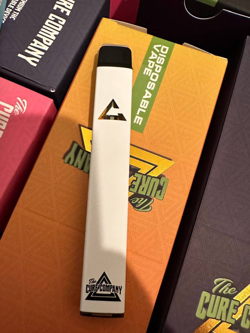 Cure company 1g disposables this is an award-winning cannabis is now available in one-gram disposable vapes containing highly potent distilled cannabis oil. Designed with convenience, strength, and taste in mind, these powerful vapes deliver strain-specific flavor on the go. The Cure OG flavor presents pungent flavors of citrus, pine, and peppery funk with each rip. Smoking this potent vape throughout the day may create a long-lasting high that focuses the mind and calms the body.
