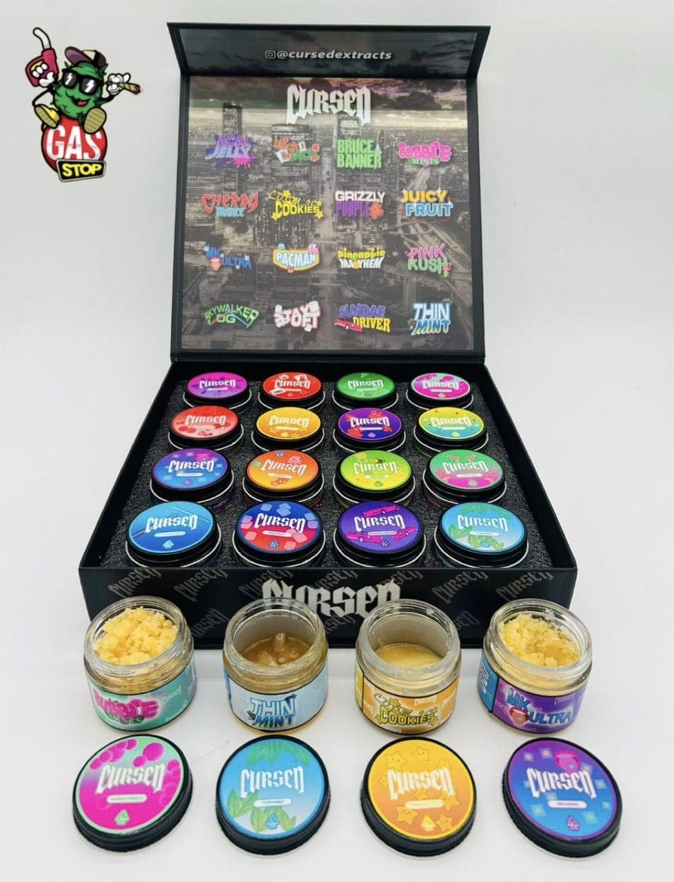 Many in the extract sphere are impressed that Cursed Extracts has perfected crafting strains in their true form from fresh frozen cannabis. Because all terpenes and cannabinoids are kept, the result has a delicious taste, good potency and is pure. This Premium Live Resin Combo combines different textures to give users the chance to explore many aspects of cannabis concentrates.