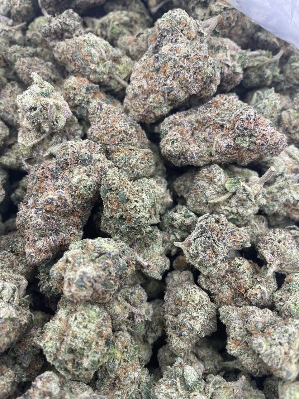 Dior Runtz buds are visually striking, characterized by their deep violet hues accented by vibrant green leaves and neon orange pistils. The buds are dense and frosty, covered in a thick layer of trichomes that glisten like diamonds under light. This luxurious appearance makes Dior Runtz not only appealing to smoke but also a feast for the eyes.