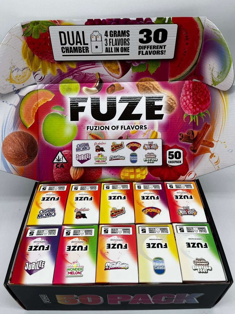 Designed to provide the convenience of a disposable vape pen with the premium quality of liquid diamonds and live resin, the FUZE cart combines the best of both worlds. Its 4-gram capacity offers long-lasting usage, ensuring that you can enjoy your favorite cannabis strains without the need for constant replacements. With three flavors all in one, the FUZE Disposable Vape Cart delivers versatility, flavor, and potency all packed into one compact and easy-to-use device.
