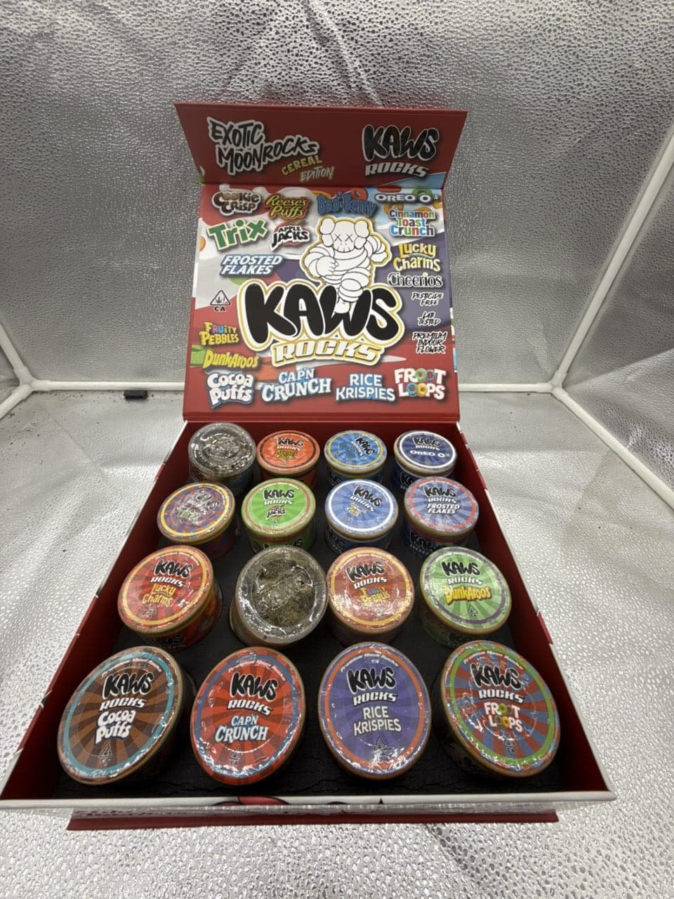 Breakfast cereals, with their playful branding and sweet flavors, are deeply embedded in childhood memories for many people. By combining these themes with the sophistication of MoonRocks, Kaws has created a fusion of innocence and indulgence. This makes the product stand out not only as cannabis but also as a cultural statement.