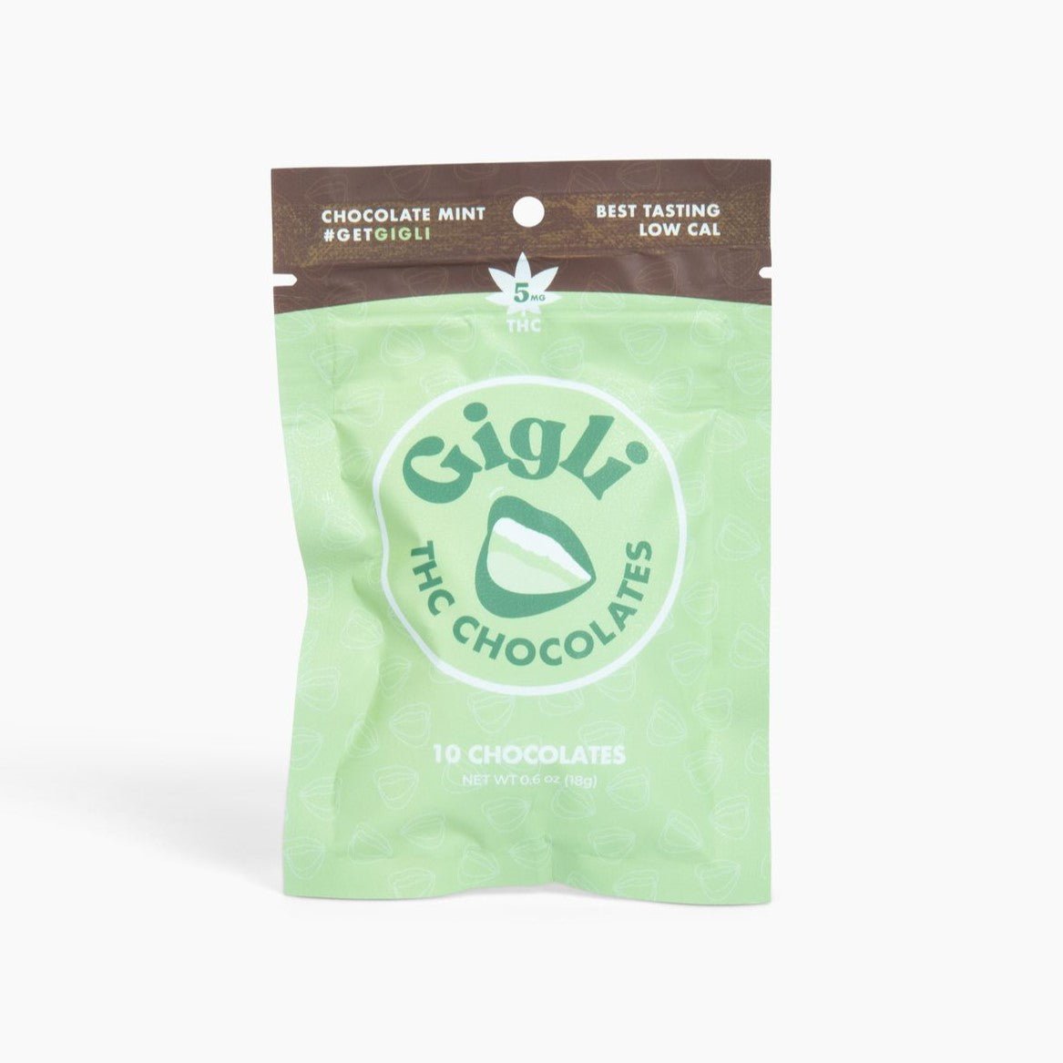 Gigli MINT CHOCOLATE 10-PACK  5MG A harmonious infusion of both chocolate and mints. Gluten free, low Cal, cruelty free, low sugar. 10 – 5mg THC chocolates.